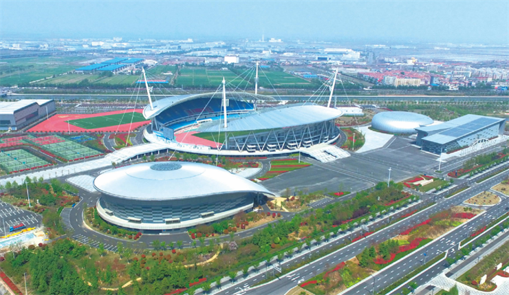 一、项目概况:位于花果山大道以西、霞辉路以北,占地面积600亩,总建筑面积10万平方米,由“一场三馆”组成。其中体育场总建筑面积4.2万平方米,主体建筑地上5层,可容纳30000名观众;体育馆总建筑面积1.6万平方米,可容纳5000名观众;游泳馆总建筑面积2.1万平方米,可容纳2700名观众;全民健身馆总建筑面积2.1万平方米。项目已面向市民开放。