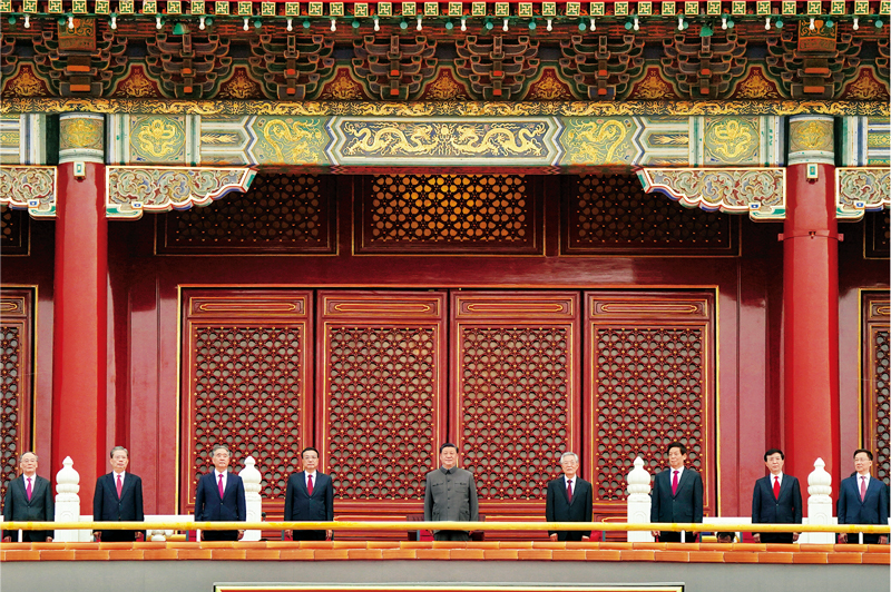 2021年7月1日,庆祝中国共产党成立100周年大会在北京天安门广场隆重举行。习近平、李克强、栗战书、汪洋、王沪宁、赵乐际、韩正、王岐山、胡锦涛等出席大会。 新华社记者 殷博古/摄