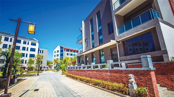 项目分为南、北两区,20个单体建筑,南区13栋,北区7栋,建筑形态分为低层(3层联排)办公区、多层办公区及配套商业服务区。民国式的建筑风格,低密度的建筑布局,使得本项目的花园式办公在连云港房地产市场具有一定的独特性。